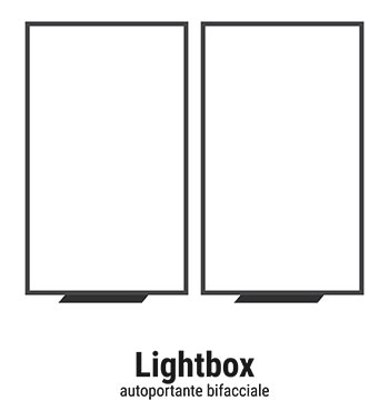 Profilo in alluminio silver da 96mm di spessore, completamente cablato con Led piramidali e trasformatore idoneo. Fornito di 2 teli stampati su tessuto per retroilluminato, allestiti con gommino siliconico perimetrale.