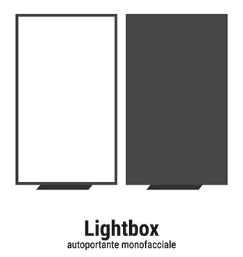 Profilo in alluminio silver da 55mm di spessore, schiena in dibond, completamente cablato con Led e trasformatore idoneo. Fornito di telo stampato su tessuto per retroilluminato, allestito con gommino siliconico perimetrale.